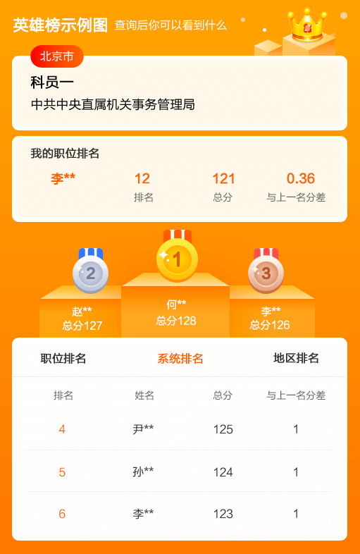 | 排名 | 姓名 | 總分 | 與上一名分差 |